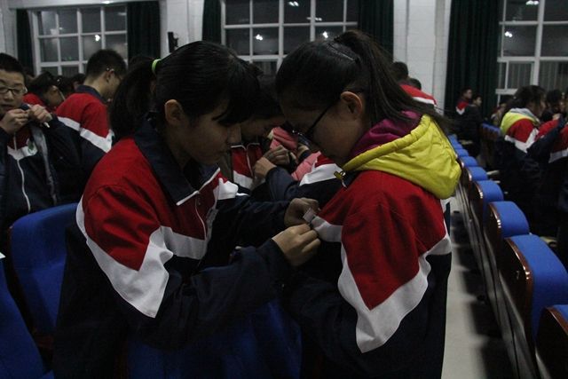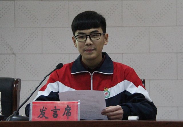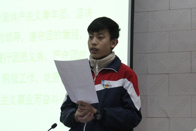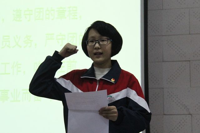 会议在团歌——《光荣啊,中国共青团》歌声中开幕。主持人张玉玉老师公布了2015-2016学年度新加入共青团的学生名单,并由学校领导和老团员给新团员佩戴了团徽。胸带团徽,新、老团员共同面向团旗,在老团员张涵杰带领下庄严宣誓:“我志愿加入中国共产主义青年团,坚决拥护中国共产党的领导,遵守团的章程,执行团的决议,履行团的义务,严遵团的纪律,勤奋学习,积极工作,吃苦在前,享受在后,为共产主义事业而奋斗。”