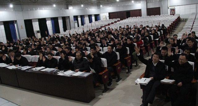 1月17日晚,我校第十届教职工代表大会暨第十届工会代表大会第四次会议在图书信息楼5楼会议室召开,本次大会共有代表218人,应到218人,实际到会218人,符合法定人数。昌乐县教育工会副主席张振华参加了大会并发表讲话。