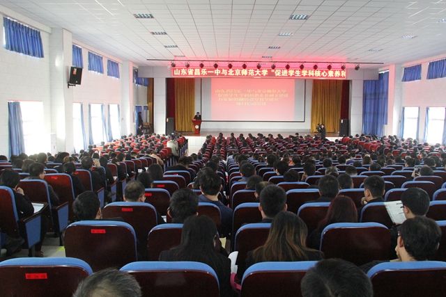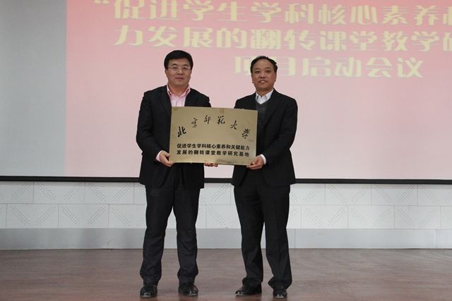 3月6日上午,项目启动仪式在我校智慧楼五楼报告厅隆重举行。北师大9大学科30多位国内顶级专家老师在北师大化学研究所所长王磊、教学部部长郑国民的带领下齐聚昌乐一中,就促进学生学科核心素养和关键能力发展与我校师生展开研讨活动。山东省教科所所长李文军、潍坊市高教办副主任曹红旗、潍坊市教科院副院长刘智华全程参加活动。同时,我校在项目启动会上被授予“北京师范大学促进学生学科核心素养和关键能力发展的翻转课堂教学研究基地”。