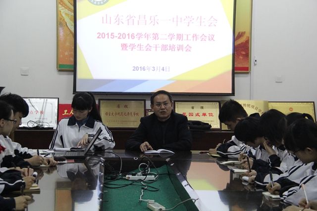 3月4日晚,我校学生会在办公楼四楼会议室召开2015—2016学年第二学期工作会议暨学生会干部培训会,布置安排新学期学生会工作。教育处副主任徐洪升、指导教师徐新伟以及学生会主席团成员和职能部门负责人参加了会议,会议由学生会主席黄雅娴主持。