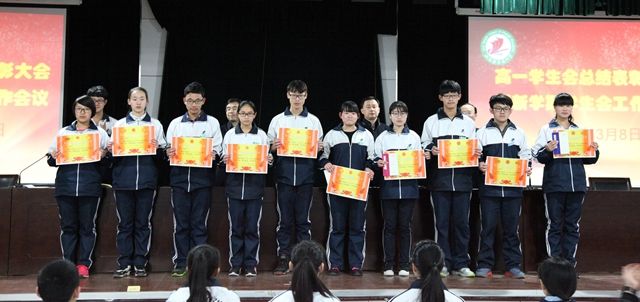 在会上,徐老师首先宣读了年级对上学期优秀学生会干部的表彰决定,年级领导为受表彰的同学颁发了奖状和奖品。赵主任简要总结学生会一学期来的工作情况,对本学期的学生会工作提出了要求和希望。年级陈主任在讲话中首先肯定了年级学生会的成长和壮大,指出了工作中存在的问题并提出了改进意见,就如何做一名优秀学生干部从学习和综合表现两个方面与同学们进行了交流。学生会主席韩沂君与会学生会干部交流了新学期的工作规划。最后,徐老师就学生会的几项具体工作提出了指导意见。
