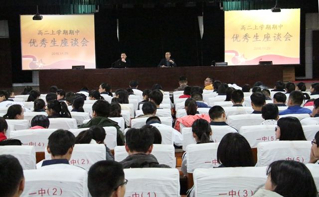 11月29日晚,我校2015级在图书信息楼报告厅举行期中优秀生座谈会暨助学指导会议,总结高二上半学期优秀生的成长发展情况,对下段的学习生活进行指导,会议由年级四级部刘福兴主任主持,年级陈子友主任及2015级200余名优秀生参加了会议。