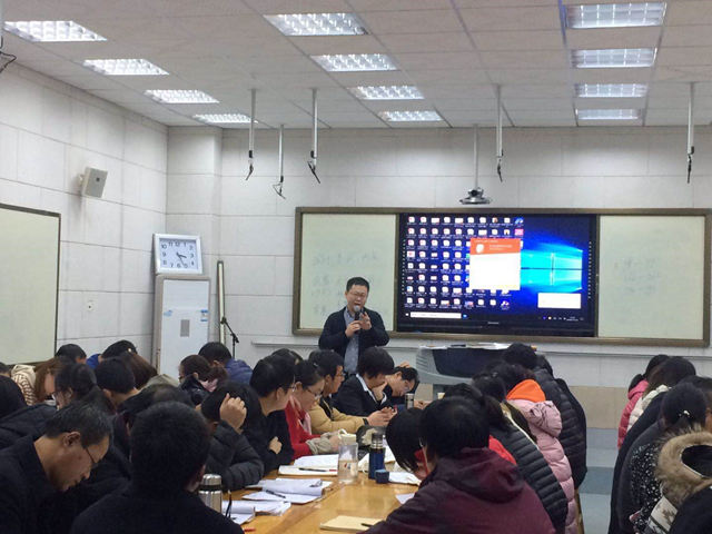 11月18日下午在高中录播室举行我校与北师大合作项目语文学科活动。北师大附中李煜辉老师和助教冯傅祎老师一行来到我校,对我校初高中语文的整本书阅读进行全面深入的指导。语文包科领导李成伟校长、李好强主任、王维强主任和全体语文教师参加了研讨。李煜辉老师在听取高中教师王海青的《平凡的世界》课堂展示和初中语文教师郝志梅《朝花夕拾》的说课后,分别对其进行了指导和深入的探究。在点评王海青老师的课堂时,李老师指出,进行单个人物形象分析需要有好的问题切入,而多个人物分析必须有比较,在比较中概括共性,回归主题。李老师指导《朝花夕拾》中强调,专题探究不是面面俱到,在单篇读懂的情况下才能进行专题阅读。