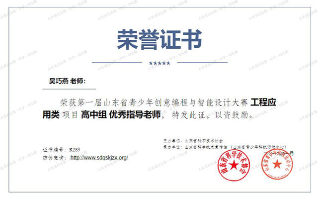 第一届山东省青少年创意编程与智能设计大赛,是山东省科协为深入贯彻落实国务院《新一代人工智能发展规划》的任务要求,向广大青少年普及推广编程与智能设计相关科普知识和技能,提高青少年对人工智能的认知和初步应用能力而举办的。大赛设创意编程和智能设计两项比赛,创意编程比赛以线上形式完成,智能设计比赛于线下形式开展。