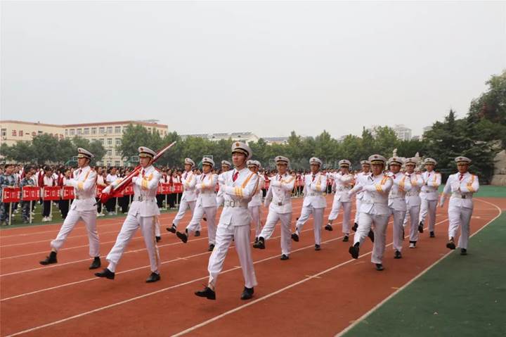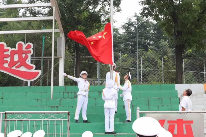 9月14日上午,昌乐一中2020-2021学年上学期第三周升旗仪式在学校体育场隆重举行。在雄壮的国歌声中,五星红旗冉冉升起,全校师生庄严肃立,向国旗行注目礼。