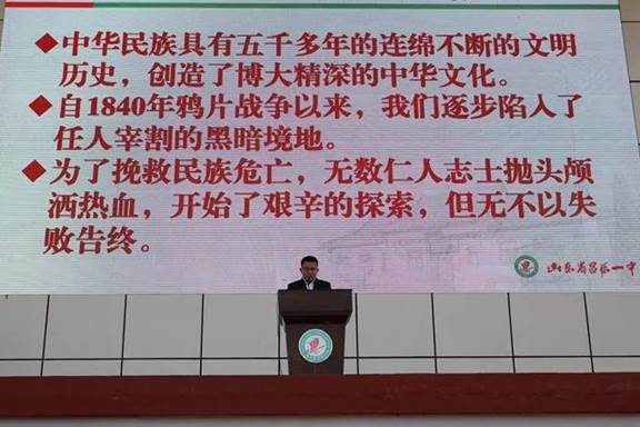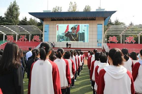 10月12日上午,昌乐一中2020-2021学年第一学期第七周升旗仪式在学校体育场隆重举行。迎着初升的晨曦,伴着雄壮的国歌,全校师生神情庄严地凝视着鲜艳的五星红旗冉冉升起。高一年级王吉东主任作国旗下讲话。
