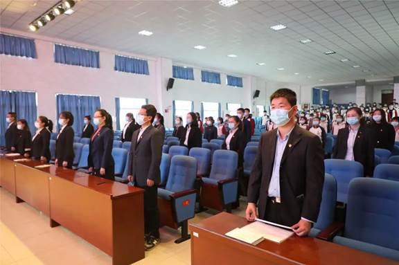 冯庆研书记发表讲话,他感谢党组织多年来的教育和培养,在今后的工作中将不断加强思想政治学习,提高自身素质,全力以赴完成学校党委和上级团组织交办的各项工作,为学校发展作出应有的贡献。