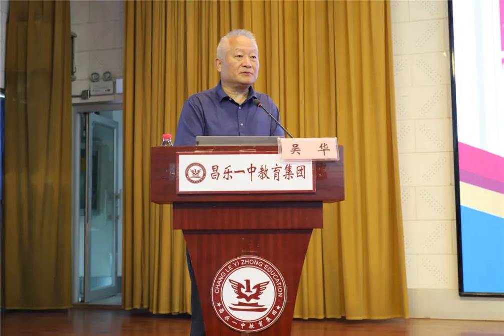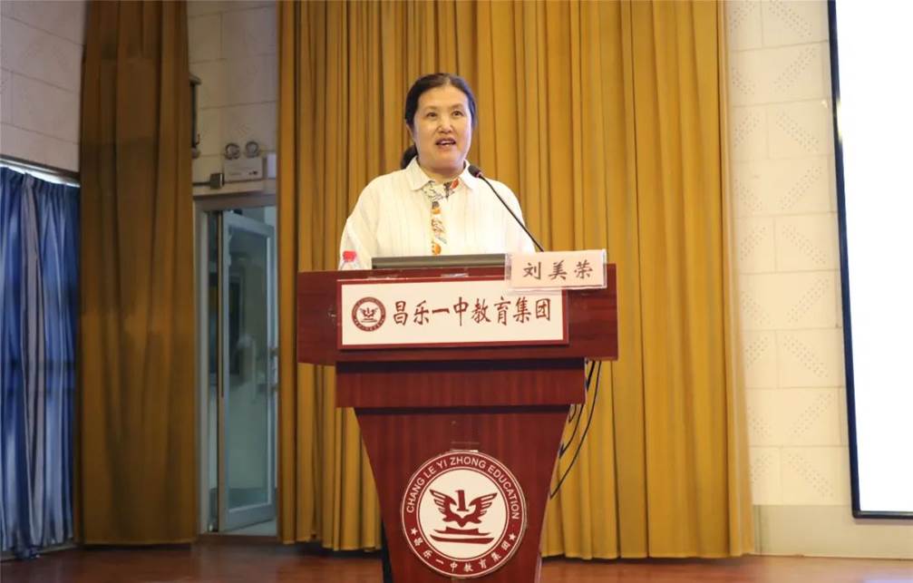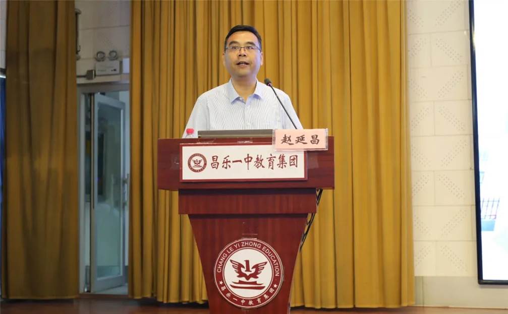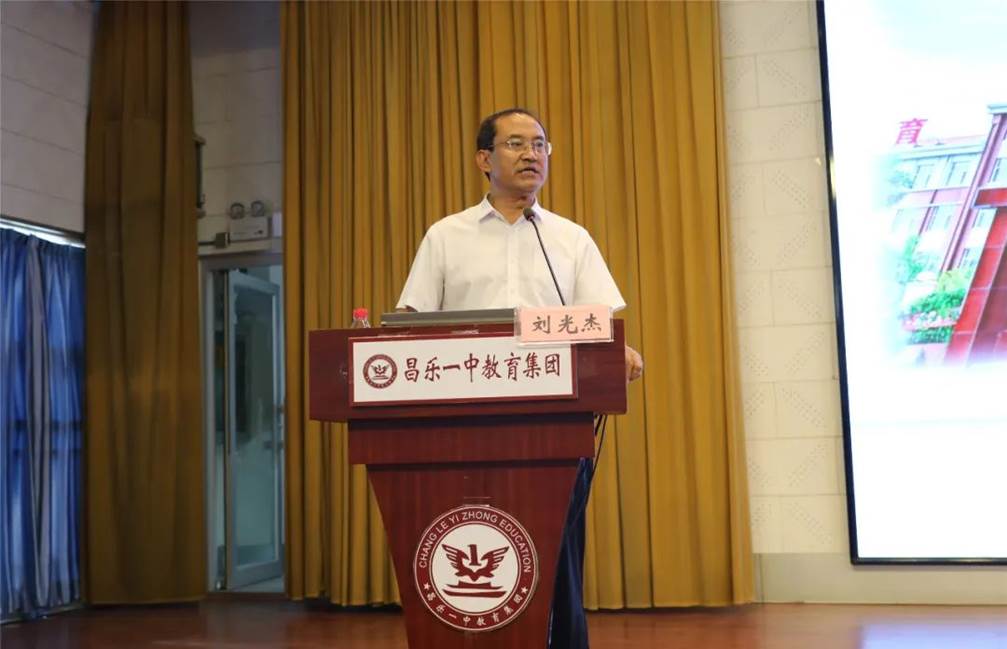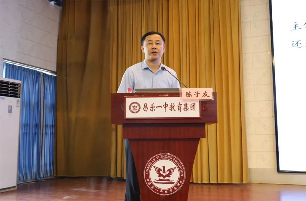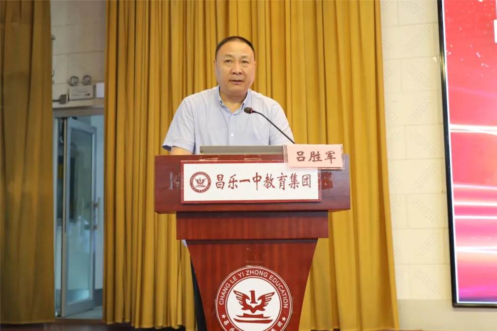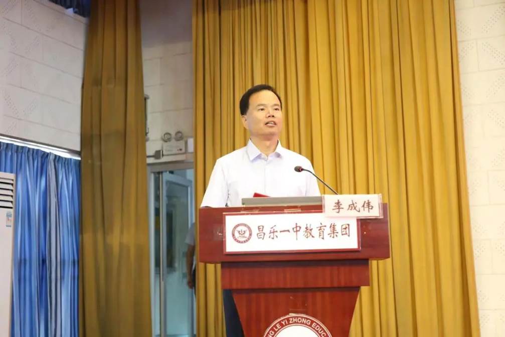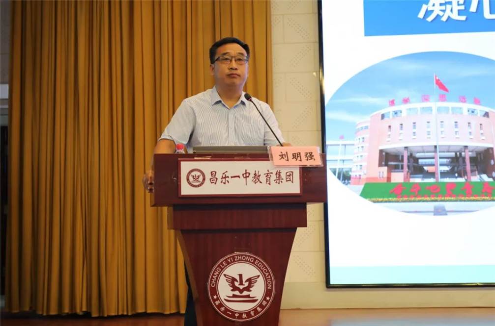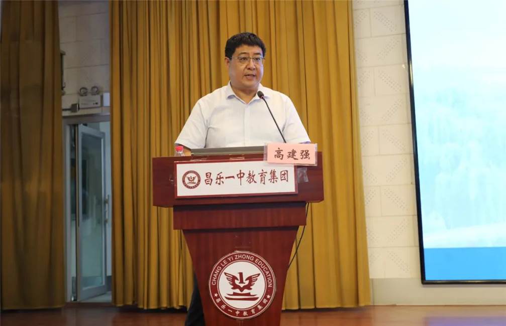 昌乐一中教育集团总校长、昌乐一中党委书记黄发国解读《昌乐一中教育集团职责》《昌乐一中教育集团组织架构》《昌乐一中教育集团管理团队》《集团执行校长岗位职责》等大会文件。