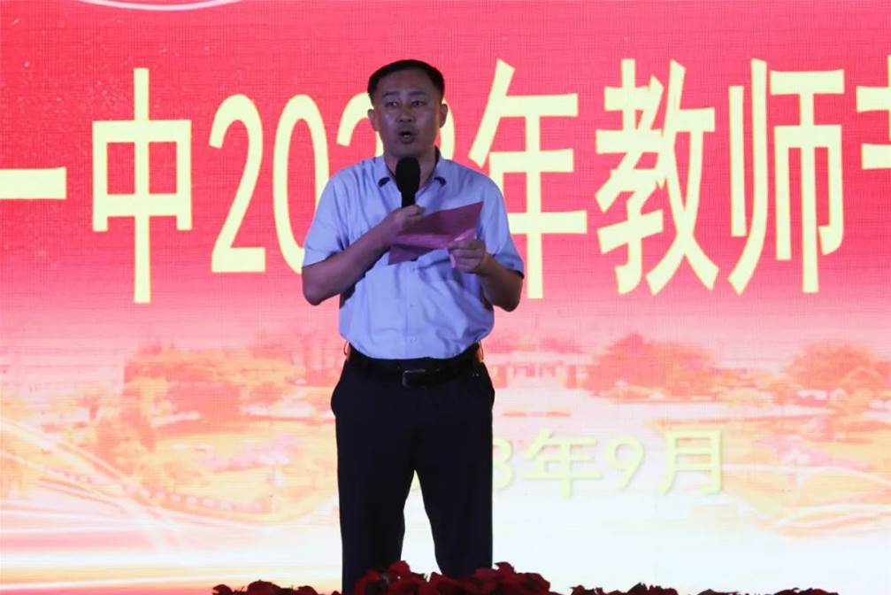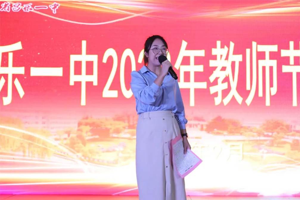 青年教师代表唐笑天发言,她讲述了自己到一中工作以来,在各位前辈老师手把手地帮助和提携下,从一个工作手忙脚乱的新教师,逐渐成长为一名能够从容应对日常教学和班级管理的优秀班主任。她感谢学校对自己的培养,决心将⼀中精神薪⽕相传,不负⼀中,不负韶华,用实际行动助⼒⼀中发展。