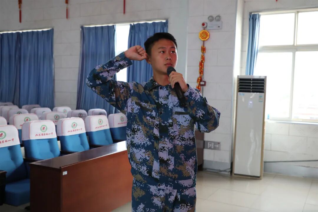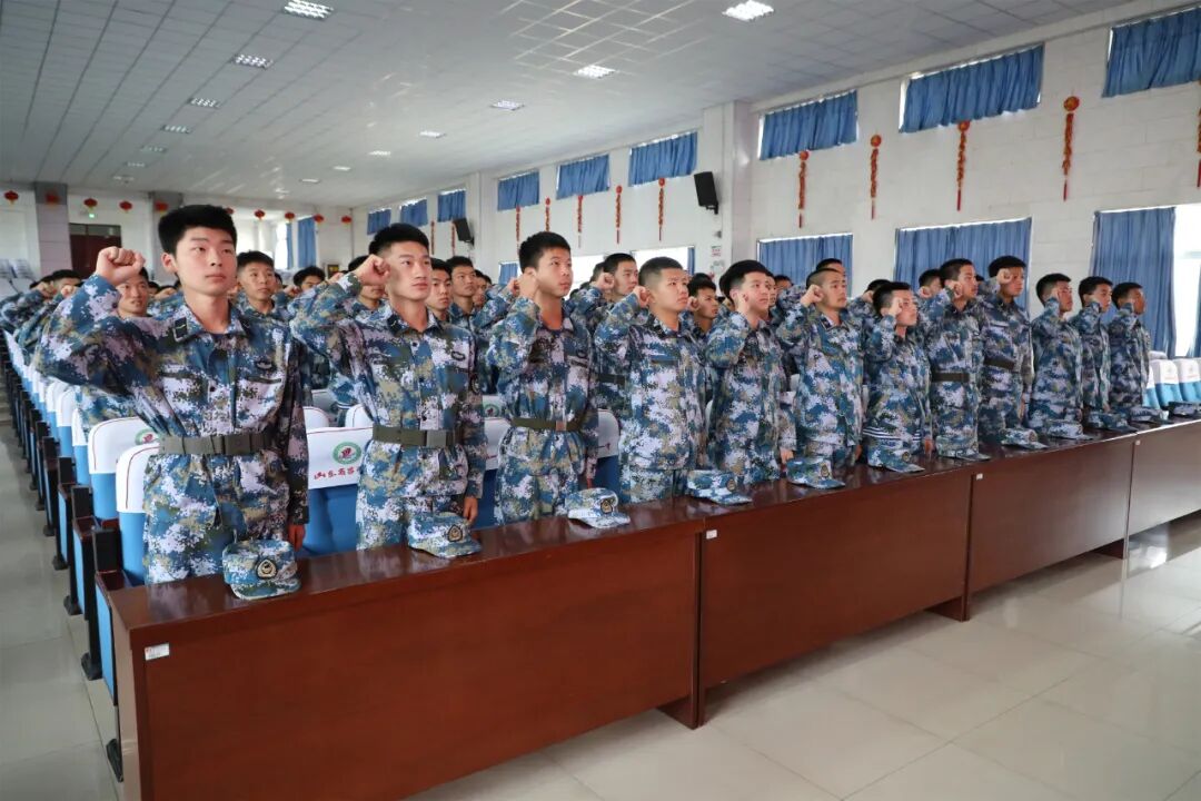 最后,在2023级鲍庆涵同学的带领下,全体海航学生面对军旗进行庄严宣誓,铮铮誓言表达了海航学子矢志海天、逐梦深蓝的决心和斗志。