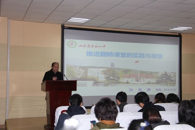 3月1日,应青岛铜川路小学郭振虎校长邀请,我校初中部刘海涛主任带领高红、王振军、于爱平三位老师前往青岛铜川路小学为当地老师培训翻转课堂。