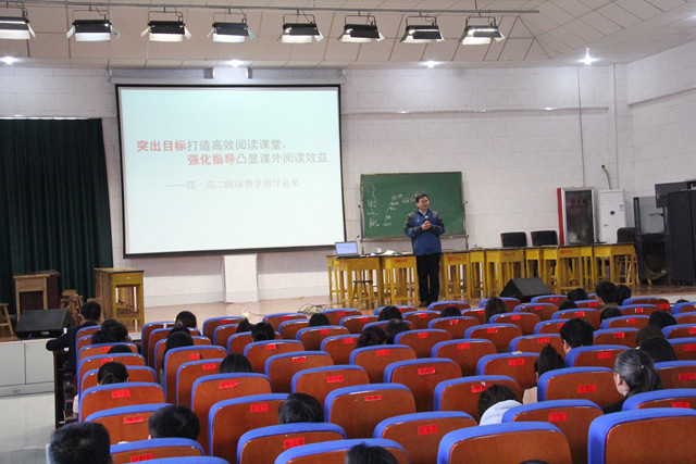 2017年10月26日上午,高中语文学科教研室主任第二次例会暨高中语文阅读教学研讨活动在我校英才报告厅召开,全县高一高二语文教师120余人参加会议,县教研室高中语文教研员毛连峰老师、我校李成伟副校长等领导参加听课活动。