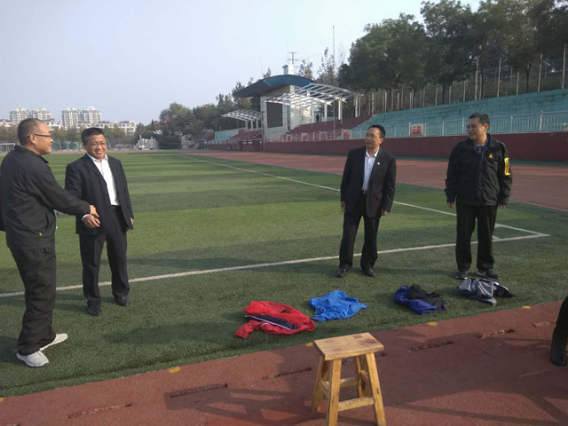县教育局副局长秦君临到考试现场指导工作,副校长张福涛陪同。秦局长对安全问题重点强调:让学习充分地做好准备活动,裁判员一定要提前预判可能会发生的事情,保证学生安全。