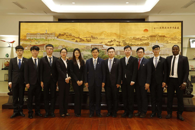 天津大学校长钟登华与学生校长助理见面(左三)
