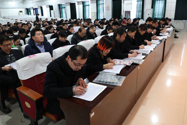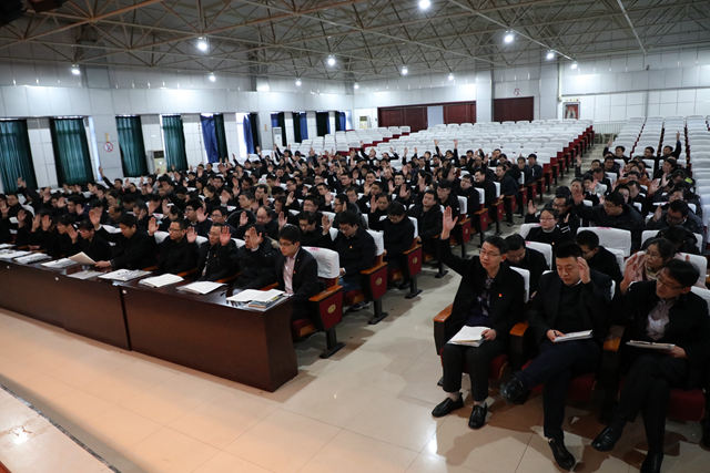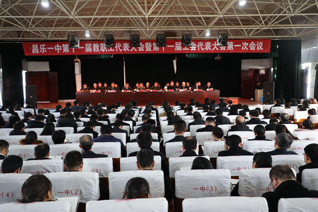 2018年2月5日下午,昌乐一中第十一届教职工代表大会暨第十一届工会代表大会第一次会议在图书信息楼五楼会议室召开,本次大会共有代表228人,应到228人,实际到会227人,符合法定人数。全体代表本着对学校工作高度负责的精神,以主人翁的姿态民主评议学校办公会成员,听取并审议通过了学校工作报告、工会工作报告、财务工作报告, 选举产生了第十一届工会委员会及下属职能组织组成人员。昌乐县教育工会副主席张振华出席大会并讲话。
