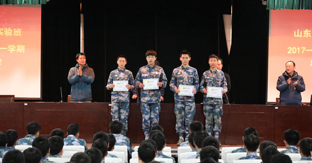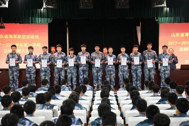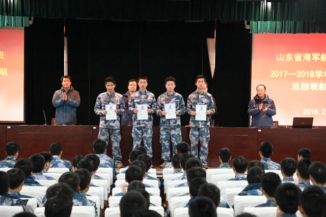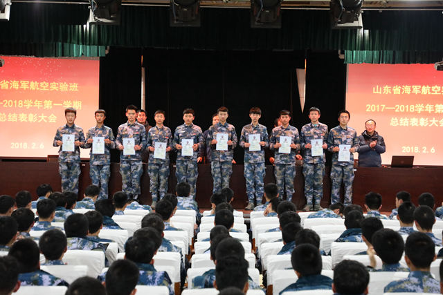 会上,李成伟副校长宣读了海军航空实验班表彰决定,学校领导分别为先进班级、内务整理优胜宿舍、优秀学员及“雄鹰”奖学金获得者颁奖。海航班班主任李洪涛、房孝忠分别从宿舍管理和班级管理进行了总结交流;指导教师张守国、徐新伟分别就视力保健和假期任务进行了安排;李校长对学员假期的学习生活进行了指导,他希望同学们对假期进行合理规划,在保证假期学习的同时积极参加社会实践,丰富阅历,提升自己,他要求同学们从自律、自觉、自强三个方面加强身体锻炼和视力保健。最后,黄校长进行指导讲话,他指出:我校海军航空实验班发展势头良好,实验班教师团队团结向上,积极进取,全时段、全方位对学员进行指导帮助,教育教学成绩显著。实验班学员目标明确、干劲十足,在学习生活、体能训练、心理品质、身体保健、文体活动等方面取得了可喜的成绩,向海军、学校、家长交了一份满意的答卷。他希望全体学员严格以“三好”标准要求自己,做到思想好:坚定信念,吃苦耐劳;做到学习好:注重基础,讲求方法;身心好:强健体魄、心品意志坚强。