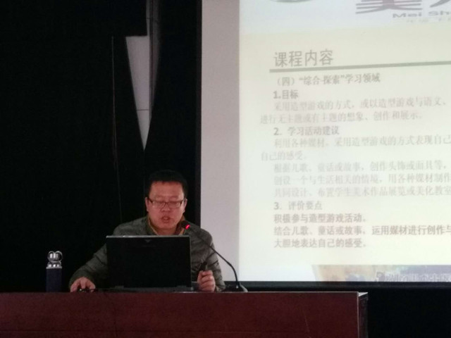 上午在初中部录播教室,外国语学校邢敏老师对美术七年级下册内容进行了详细的分析,并对教学目标进行了详细的解读;下午由实验中学的袁金帅老师对八年级下册的内容进行了教材通研。50多名老师认真听课、记录,在课下也进行了热烈的讨论。