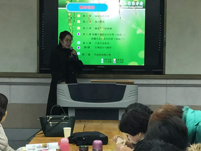 在高中部录播教室,90多名小学美术教师认真听取了附小王永亮老师以及行知双语学校李燕老师对一年级教材的研究,两位老师分别对教学目标,教学内容,教学策略,教学建议,教学评价等方面对与老师进行了交流。