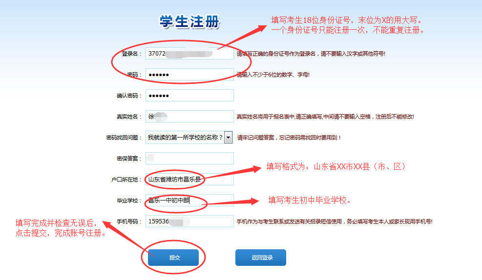 ③户口所在地填写规范:山东省XX市XX县(市、区)