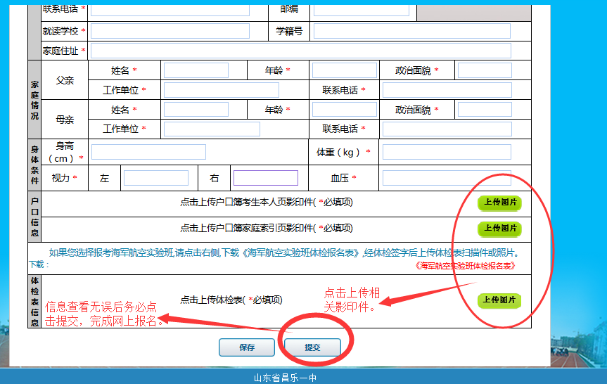 ⑤上传考生照片、户口本(考生本人页、家庭索引页)、报名体检表时可用手机拍照或扫描上传,要保证上传影印件的内容清晰可辨。