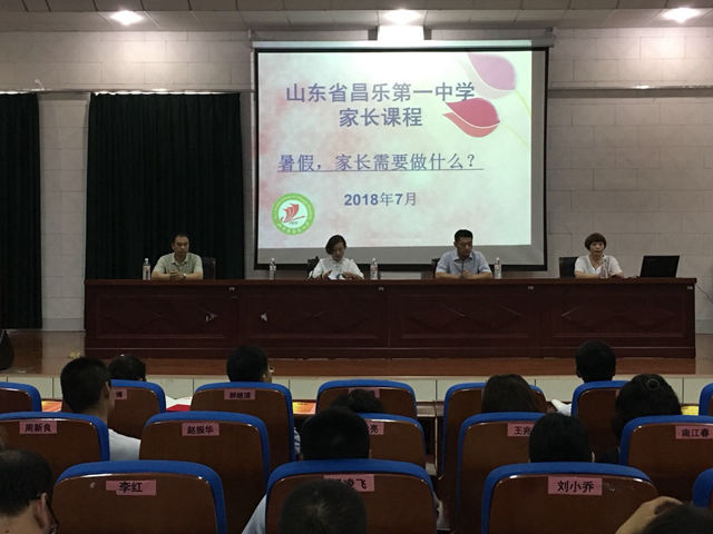 2018年7月4日,昌乐一中初中部家委会总结交流暨表彰大会在初中英才楼报告厅隆重举行,昌乐一中校长助理刘海涛、初中部综合办公室主任张玉德、初中部家委会主任周承全、各班级家委会主任、委员以及优秀家长代表100余人参会。