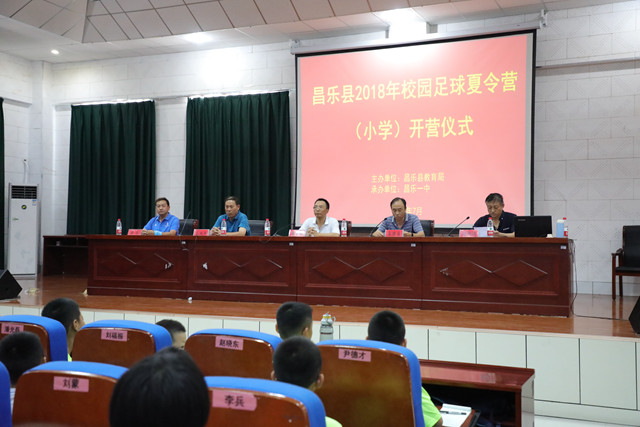 7月15日,由昌乐县教育局主办,昌乐一中承办的昌乐县2018年校园足球夏令营(小学组)开营仪式在我校英才报告厅举行。昌乐县教育局副局长秦君临,昌乐一中党委副书记王兆平,昌乐县教育局体卫艺科科长孟德宝、副科长刘洪滨出席开营仪式,各参训单位的领队、学员、教练员共计120余人参加。