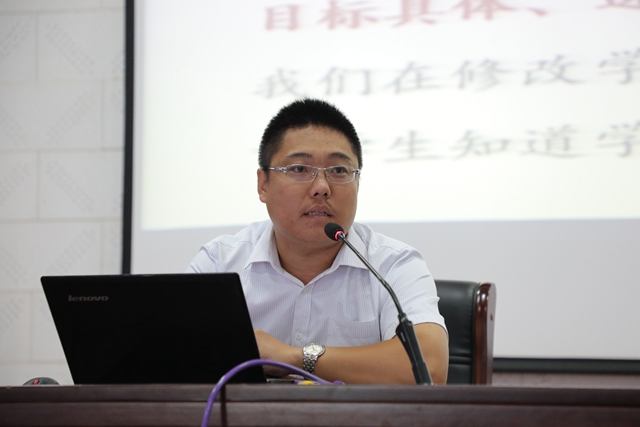 会议首先由各个备课组长介绍了外出学案编制和修改的经验。语文组韩瑞见老师指出:学案编写总体遵循文本挖掘为原则,突出新课标,突出核心素养、突出学生自学的学习过程、突出自学的评价机制的设置,在每一个学案的设计中,从目标的设置、自学过程、训练展示、总结反思各环节,全面落实“发现美、鉴赏美、创造美”三美教学法;英语组秦凯老师突出了课型环节的把控,自学质疑课注重学生听说能力的培养,同时也注重学生单词的掌握,特别是重在让学生深层次的理解课文;训练展示课注重练习题型多样化,与考试题型相吻合,同桌互查、小组互评等多种评价方式相结合,错题及时整理巩固。物理组杨博昌主任落实了学案编制的三大理论依据:一是新课标要求下的学科素养和关键能力;二是北师大合作提升项目的成功做法;三是学校翻转课堂的新理念。物理组强化了学案编制修改的七个环节(1)规范目标,强化导学;(2)分点设计,逐步突破;(3)问题驱动,体现过程;(4)进阶提升,逐步深入;(5)嵌入评价,自我检测;(6)适应变化,降低难度;(7)因材施教,分层训练。化学组王育军主任突出了两个方面的学案和修改,一是在设计问题上充分考虑了北师大关于学科核心素养方面的要求,设计问题时有一定的开放性,注重学生思维能力的提升;二是坚持十六字方针:目标明确,过程细化,实时进阶,嵌入评价。政治组宫麦香老师介绍了学案编制的经验:整合各方面资源,有机融合,丰富内容;教学目标明确具体,可操作性强;自学质疑案注重多元主体评价和过程性评价相结合,问题设计突出学生主体地位;训练展示案以活动为载体,注重学生活动参与,三个活动由感性到理性,层层深入,落实核心素养。地理组马勇老师介绍了学案编写的体会,先明确学历案的编写标准,根据学科核心素养设计设计学习过程,把学习过程还给学生,贯彻学教评一致性,做好嵌入式评价,做好微课评价,设计利用好学后反思。