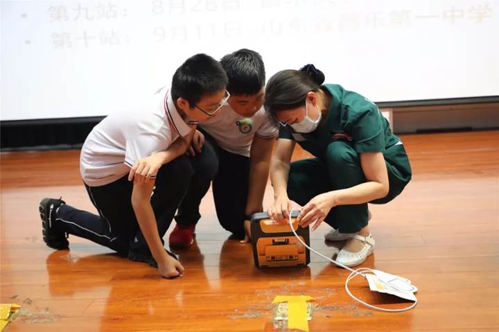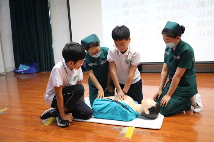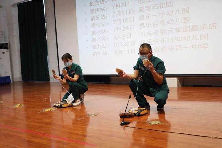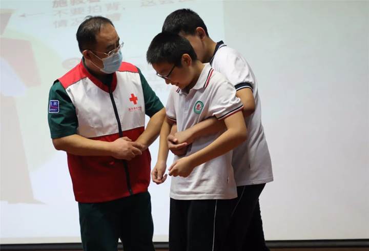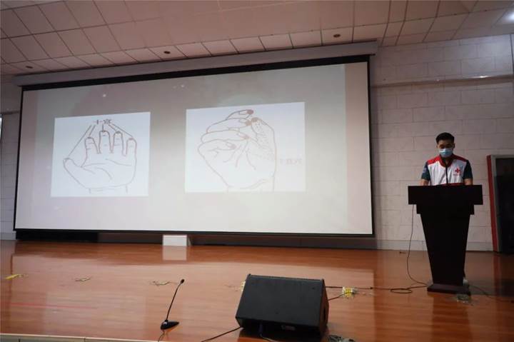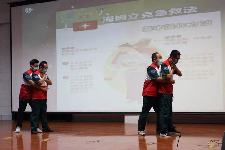 本次培训内容包括七步洗手法、口罩正确佩戴方法、海姆立克急救法、脑中风中医急救知识、心肺复苏术、自动体外电除颤(AED)知识科普等。每一个模块,专家们用生动的语言进行讲解,用标准的动作进行示范,通过台上台下互动,给师生上了一堂精彩的培训课。