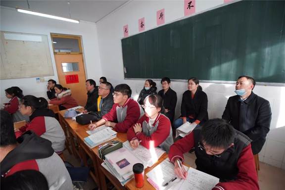 12月30日下午,潍坊市教科院领导专家一行十余人在李庆华院长带领下专程到我校进行教学视导。县教育和体育局党组成员、教研室主任韩文录和各学科教研员,昌乐一中党委书记、总校长黄发国及各学科包科领导、教研室主任陪同活动。