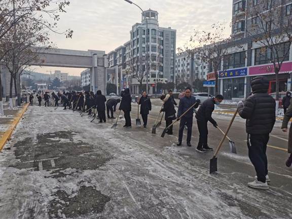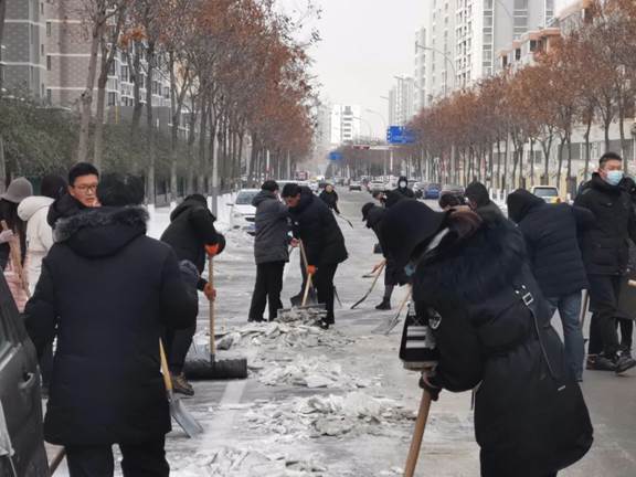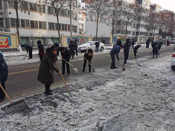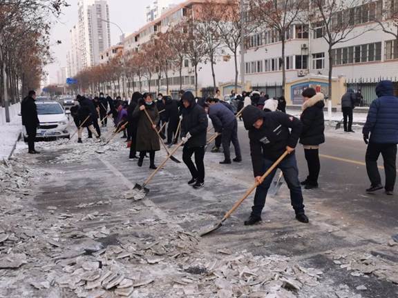 根据气象部门预测,受强冷空气影响,我县近日将迎来极寒天气。目前我县前期降雪导致的结冰路面还未彻底清理,如果不及时处理,将会带来安全隐患并给群众出行造成不便。为保障昌乐市民出行安全,彻底清理道路积雪残冰,昌乐一中积极响应昌乐县委办、县府办关于进一步开展积雪清理工作的通知要求,于1月5日上午组织教职工开展义务铲雪除冰活动,顺利完成了一中街和永康路相关路段道路积雪残冰的清理工作。