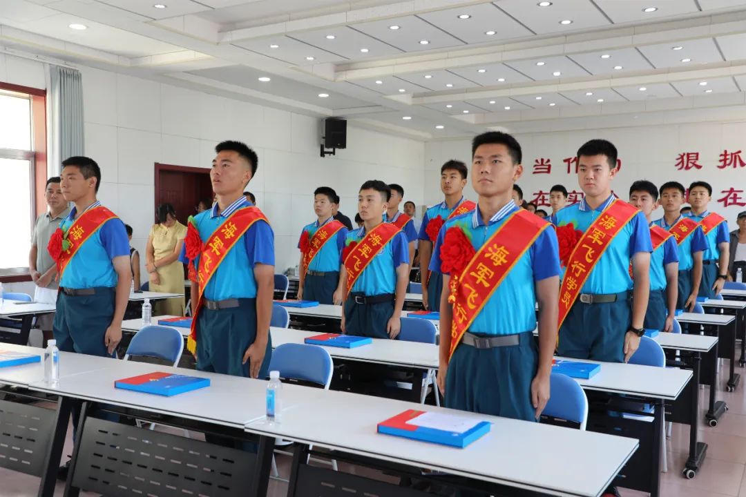 最后,海军招飞办领导在讲话中向大力支持山东省海军青少年航校建设的各级领导,昌乐一中全体教职员工和信任支持人民海军的家长们表示衷心感谢。对录取的飞行学员提出了三点希望,一是始终承载梦想,要牢记祖国和人民的嘱托,担当起历史赋予的使命责任。二是不断磨砺自己,尽快实现由民到兵、由地方高中生到军校学员的华丽转身和完美蜕变。三是严格遵章守纪,服从纪律,保持清醒,坚定信念,谨言慎行,让前进的道路始终充盈阳光和正气。