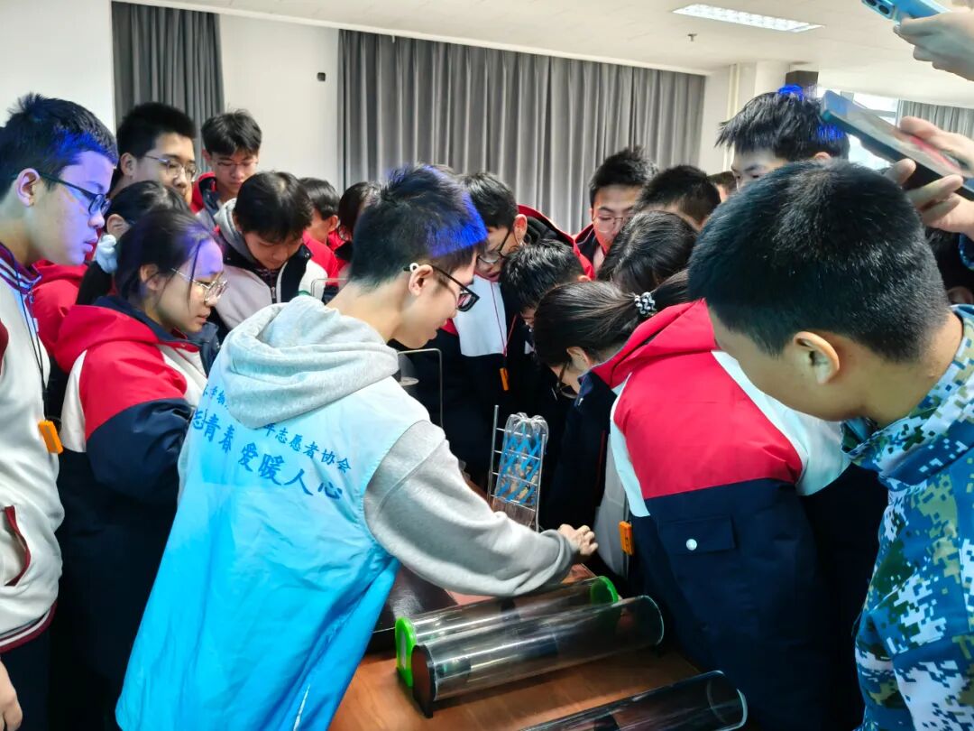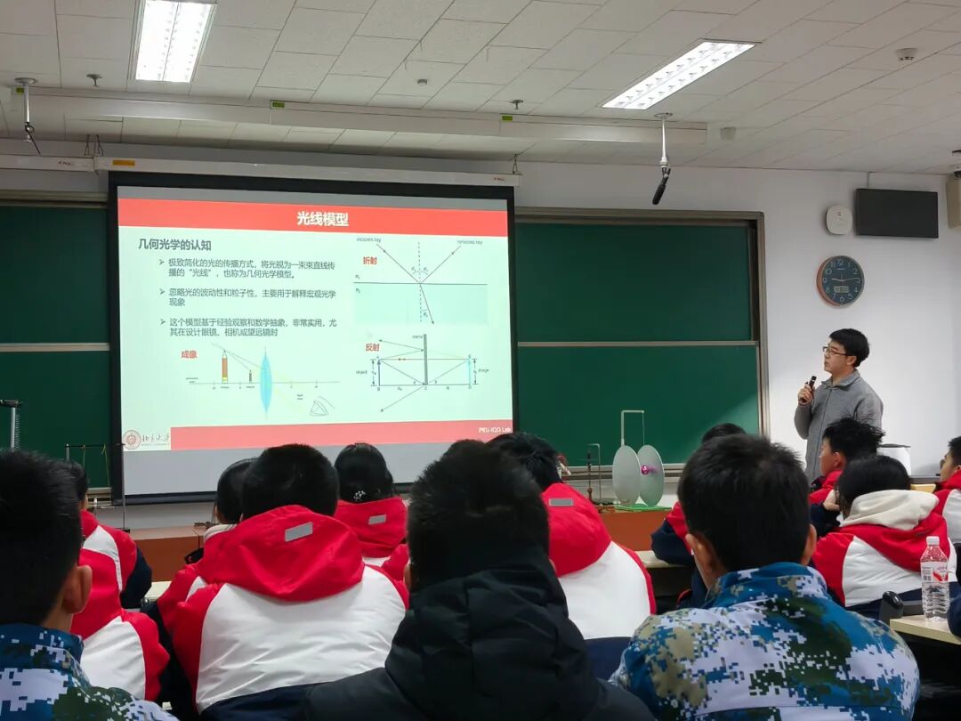 29日上午,同学们走进了北京大学本部。北京大学物理学院博士研究生翟翀昊为同学们作《光子、量子与信息—光的双重面纱与量子奇妙世界》报告,北大物理学院志愿服务团队为同学们开展多项有趣的物理实验,为同学们打开奇妙的物理世界的大门。