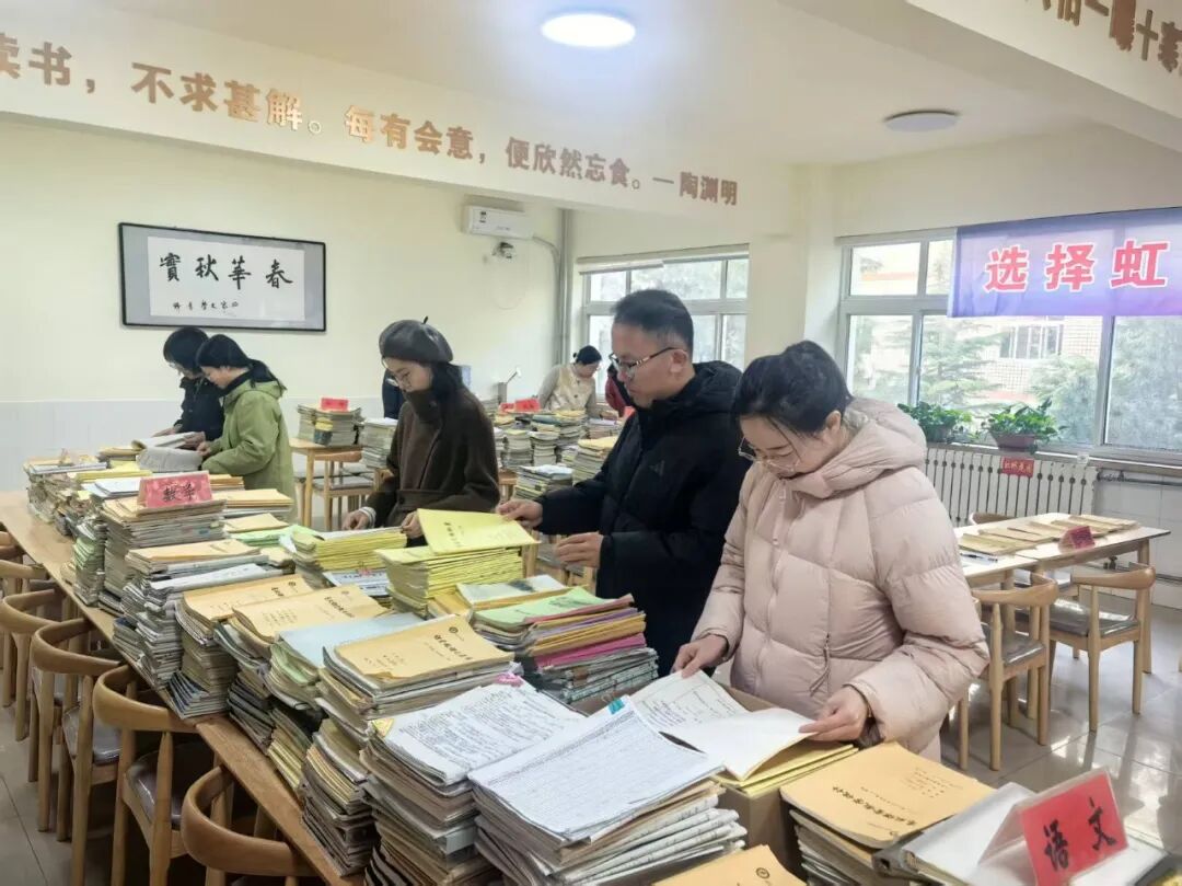 本次展评活动筹备周密,覆盖初一至高三六个年级全学科。按照“突出优秀、示范引领”的原则,各学科筛选出前三分之一教学常规优秀的教师参与展示,参展材料涵盖学案积累、教学设计、听课本、作业批改样本、试卷批阅(含二次过关)、成绩册、学生教材勾画记录等核心教学环节资料。其中,语文、英语学科额外展示了作文本、阅读学案,各学科还提交了中高考题研做材料及特色教学成果,全面呈现了教师在教学规划、过程实施、学情反馈等方面的扎实功底。同时,活动专门设置级部主任听课记录本展区,集中展示级部管理中的教学指导与监督成效,凸显学校“分层引领、全员提升”的教学管理思路。
