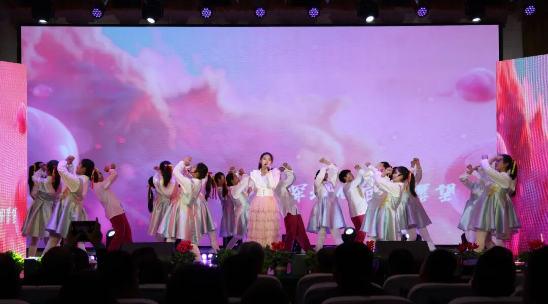 舞台之上,精彩节目轮番登场,亮点纷呈。幼儿园小朋友带来的舞蹈《梨园小花旦》,将传统戏曲文化与童真童趣巧妙融合,勾勒出文化传承的温情脉络;表演唱《爱就一个字》以纯净童声抒发真挚情感,彰显美好品质代代相传的蓬勃力量;初中部表演唱《璀璨冒险人》尽显青少年的朝气与活力,诠释成长路上的无畏探索。