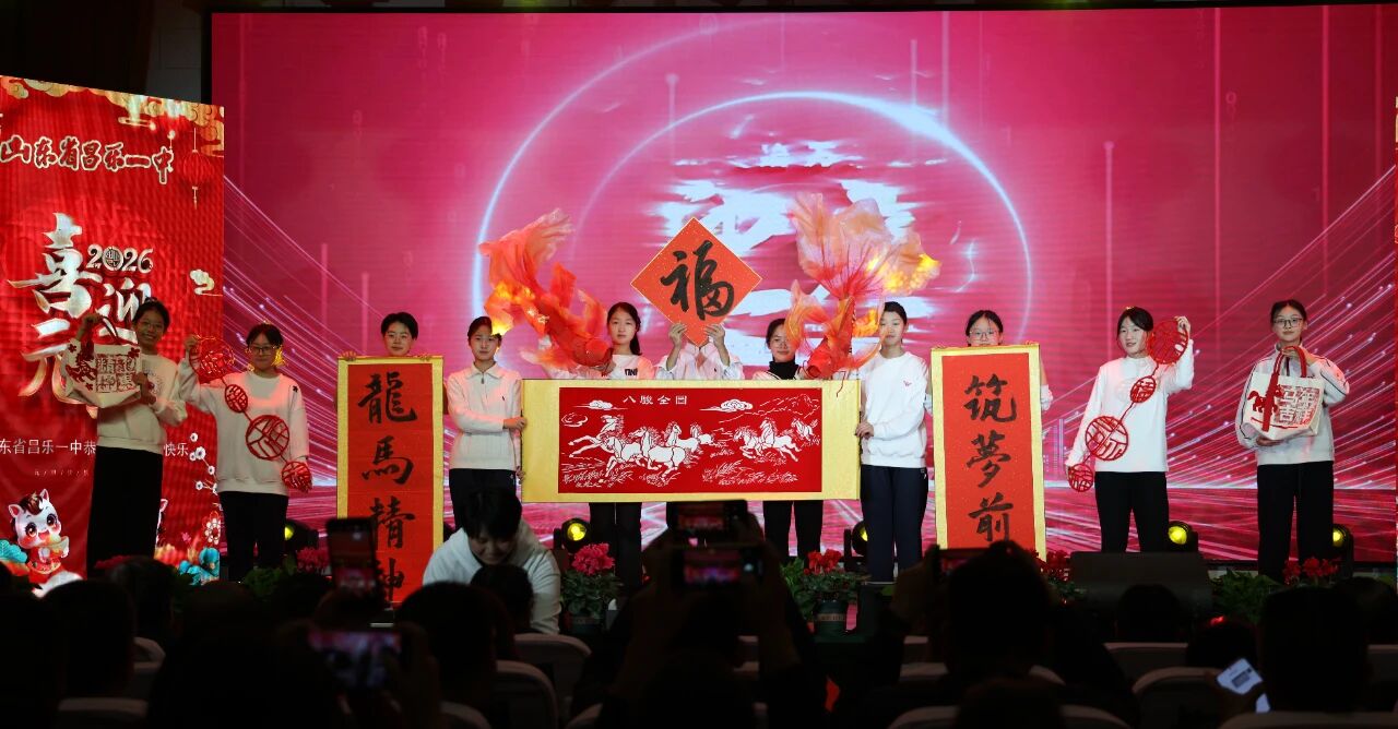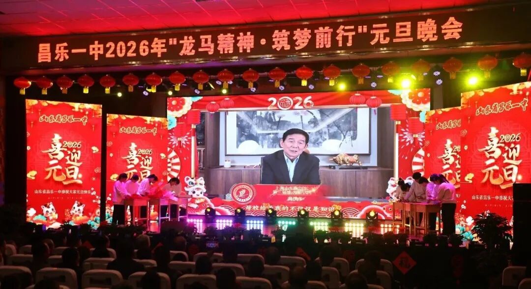 12月28日晚,昌乐一中2026年“龙马精神 筑梦前行”元旦晚会在智慧楼报告厅隆重上演。山东省教育基金会、昌乐一中济南校友会暨济南昌乐商会、昌乐县委县政府、昌乐县教体局相关领导,爱心企业家代表、学生家长代表与师生代表齐聚现场,共贺新岁。数十万海内外校友、师生及家长通过网络直播云端相聚,共同见证这场兼具思想性与艺术性的文化盛宴。