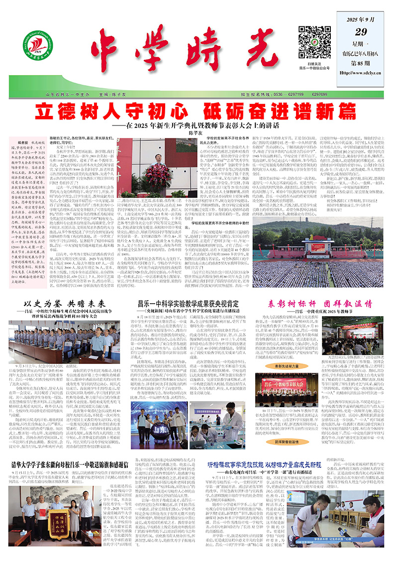 翰苑画卷美不胜收,恰似你将要留在这里的青春年华,昌乐一中欢迎你!